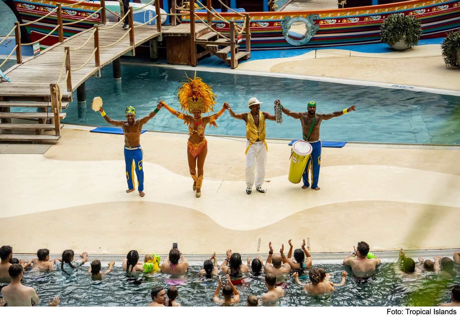 Mit dieser brasilianischen Darbietung setzt das Tropical Islands einen sommerlichen Akzent und bietet Gästen aller Altersgruppen eine ausgewogene Kombination aus Erholung und Unterhaltung in einem tropisch gestalteten Umfeld.