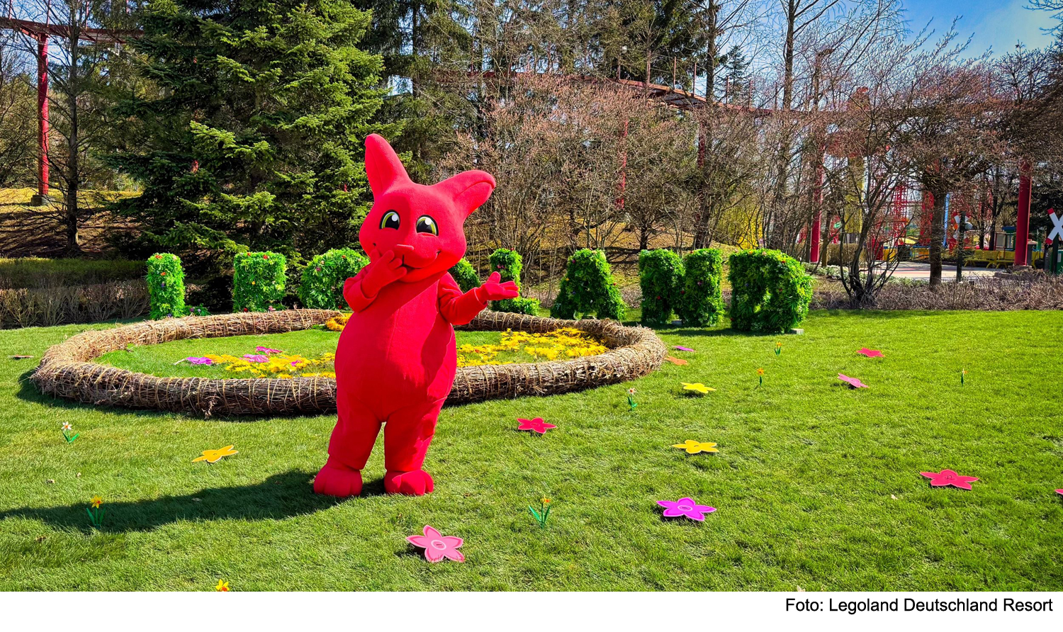 Noch bis Sonntag, 27. April 2025 erleben die Besucher ein kinderfreundliches Osterprogramm im Legoland-Park: Auf der Miniland-Wiese entsteht das größte Legoland-Osternest aller Zeiten. Aus tausenden Legosteinen wird ein riesiges, fantasievolles Osternest gebaut, das mit jeder hinzugefügten Kreation weiterwächst. Ob bunte Eier, fröhliche Hasen oder kleine Frühlingsmotive – der Kreativität sind keine Grenzen gesetzt. Angeleitet wird die Bauaktion am Ostersonntag und Ostermontag von Lego-Master Eric Mange, der schon sein Leben lang ein begeisterter LEGO-Baumeister ist. 2025 nahm er gemeinsam mit seinem Teampartner Michel an der sechsten Staffel der TV- Show Lego-Masters teil und erreichte den zweiten Platz im Finale. Seine fantasievollen Bauwerke und sein Talent, Kinder für das kreative Bauen zu begeistern, machen ihn zu einem perfekten Begleiter der Aktion.