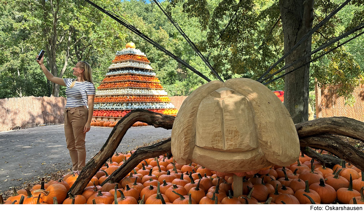 Die Aufbauarbeiten schreiten zügig voran. Erste Gestelle für die großformatigen Figuren werden positioniert, während der Innenbereich bereits mit herbstlicher Dekoration versehen ist. Das Küchenteam von Oskarshausen arbeitet zudem an neuen Kürbisgerichten.