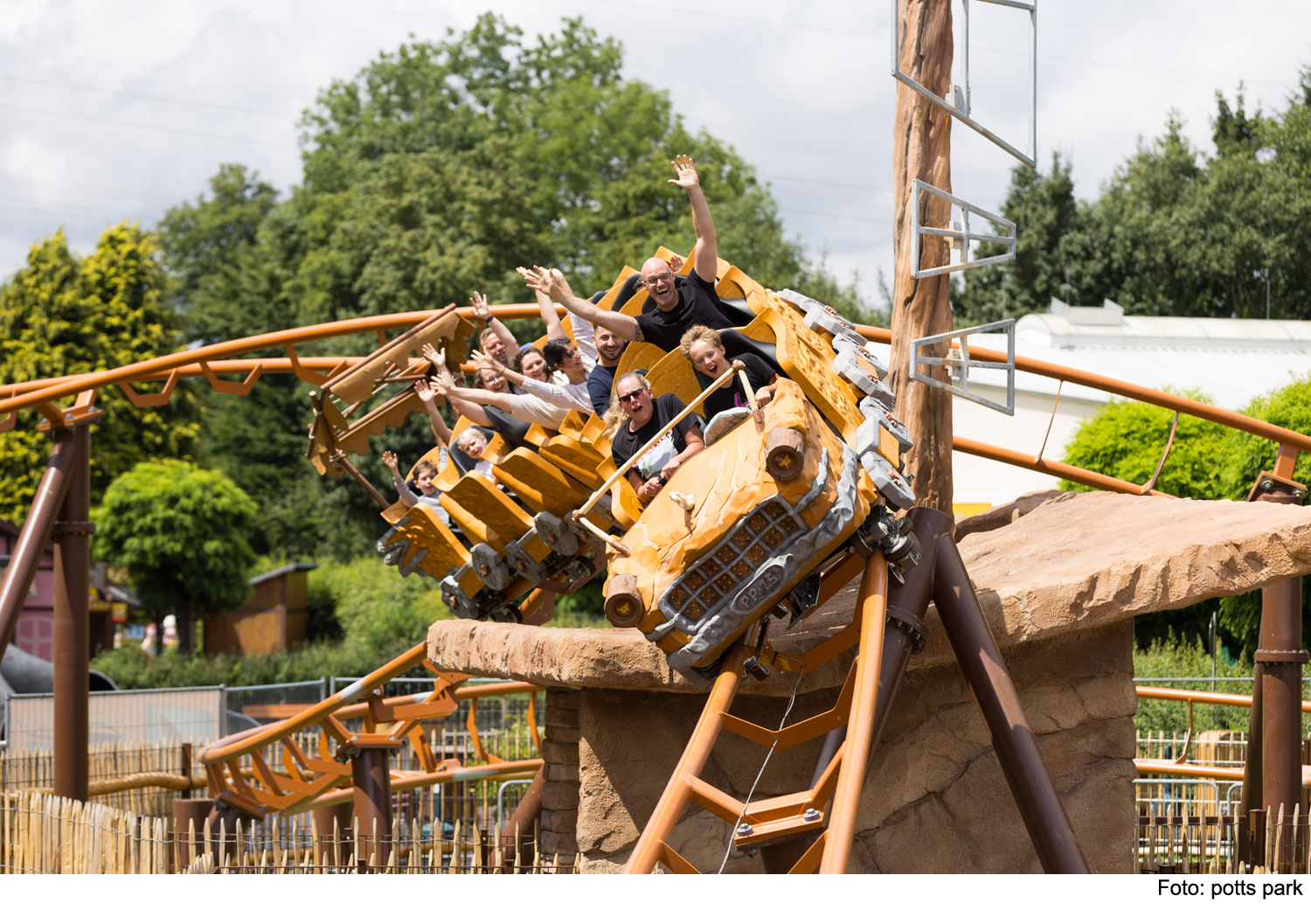 Mit der neuen Achterbahn ergänzt der Potts Park seinen Themenbereich „Wilde Steinzeit“. „Auch bei der neuen Achterbahn haben wir sehr viel Wert auf die Steinzeit-Thematisierung gelegt“, sagt Geschäftsführer Henrik Pott. „Der Gast wird in einer verrückten Steinzeit-Waschstraße gewaschen, gebürstet und auf eine spezielle Art und Weise luftgetrocknet“, so Pott weiter.