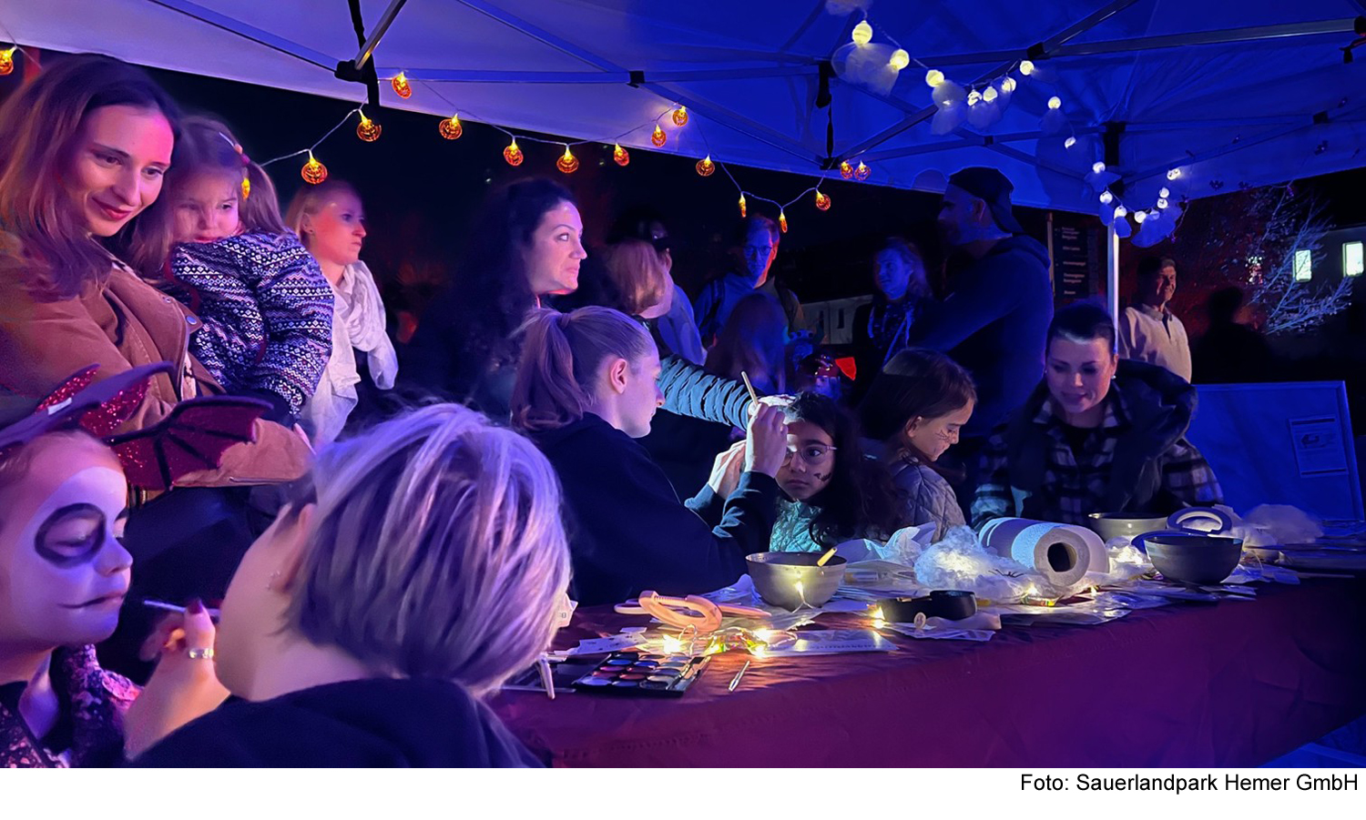 „Pssst, nicht verraten! Das sind gar keine echten Gruselgestalten, sondern nur die Mitglieder des Theaters Hemer. Sie verwandeln sich – und machen damit unseren Halloween- Spaziergang zu einem ganz besonderen Erlebnis“, so Gesche Rademacher, die als Verantwortliche für das „Grüne Klassenzimmer“ des Sauerlandparks viele Aktivitäten für diesen Abend geplant hat.