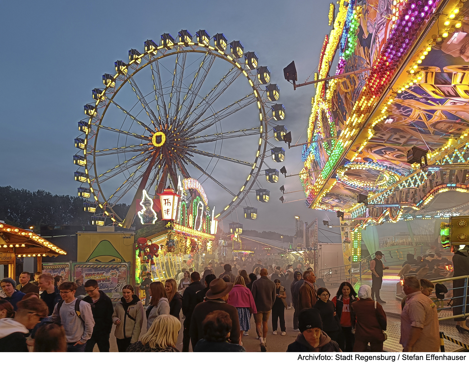 Weitere Wiesn-Highlights sind der „Breakdance“ der Familie Grünberg-Kaiser und das Rundfahrgeschäft „Circus Circus“ der Familie Gründler & Preuß. Begleitet von modernsten Licht- und Soundeffekten der Extraklasse sorgen sie für den ultimativen Adrenalinkick. Zur Abrundung des Angebots sind natürlich auch wieder Klassiker wie das große Riesenrad von Gabriele Willenborg und der „Autoskooter Eduard Diebold“ vertreten. Neu in Regensburg ist die große Geisterbahn „Spuk“ der Familie Molengraft-Sipkema aus Holland, die eine weitere besondere Attraktion darstellt.