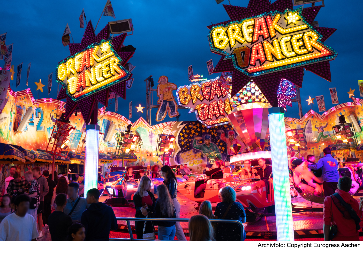 „Wir haben auch in diesem Jahr ein abwechslungsreiches Programm zusammengestellt – da ist wirklich für jeden etwas dabei“, verspricht Kristina Wulf, Betriebsleiterin des Eurogress Aachen. Ein besonderes Highlight: das imposante Riesenrad in der Platzmitte, das einen fantastischen Blick über das Festgelände bietet.