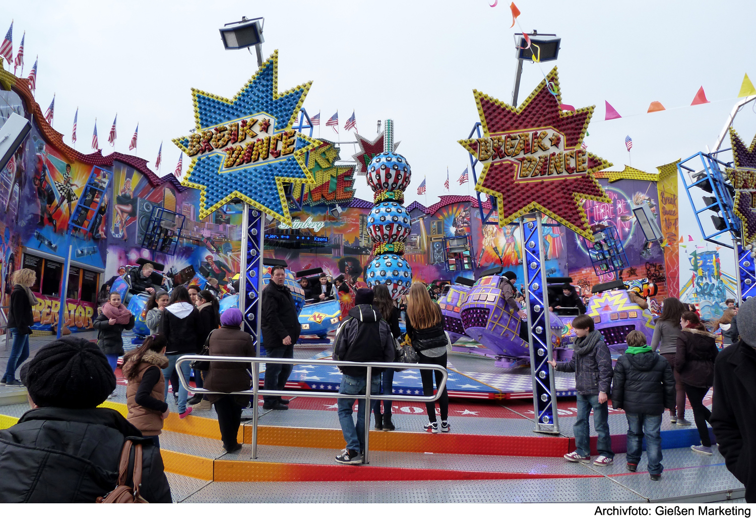 In diesem Jahr ist erstmalig in Gießen der hohe Kettenflieger „Fly Over“ und sorgt für einen schwungvollen Überblick auf dem Messeplatz. Für diejenigen Gäste, die den Nervenkitzel suchen, bieten sich zum Beispiel die Fahrgeschäfte „Freak“ mit seiner Höhe von 42 Metern oder die Geisterbahn „Thriller“ an. Auch der Evergreen Autoscooter und verschiedene Fahrgeschäfte für Kinder wie beispielsweise das Laufgeschäft „Krumm & Schief Bau“ dürfen natürlich nicht fehlen. Wer Fortuna herausfordern will, kann bei Geschicklichkeitsspielen wie der „Glücksboutique“ sein Bonheur versuchen.