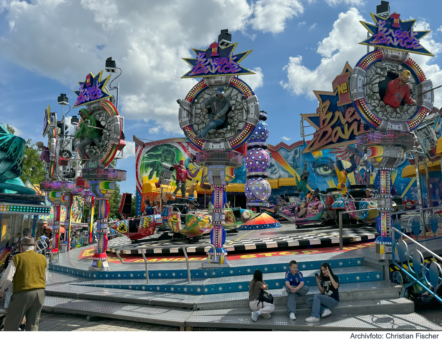 Im Vergnügungspark, für den erneut Timo Zöllner verantwortlich zeichnet, erwarten die Besucherinnen und Besucher zahlreiche attraktive Fahrgeschäfte, die von „Breakdance“ über das Kinderkarussell und den Kettenflieger bis zum Autoscooter reichen. Für kleinere und kleinste Messebesucher gibt es am Dienstag, 1. Oktober 2024, und am Freitag, 4. Oktober 2024, wieder zwei Kindernachmittage mit vergünstigten Preisen. Auf insgesamt rund 260 laufenden Metern warten zudem 22 Markthändler und 17 Essens- beziehungsweise Lebensmittelstände auf kauflustige und hungrige Kundinnen und Kunden.