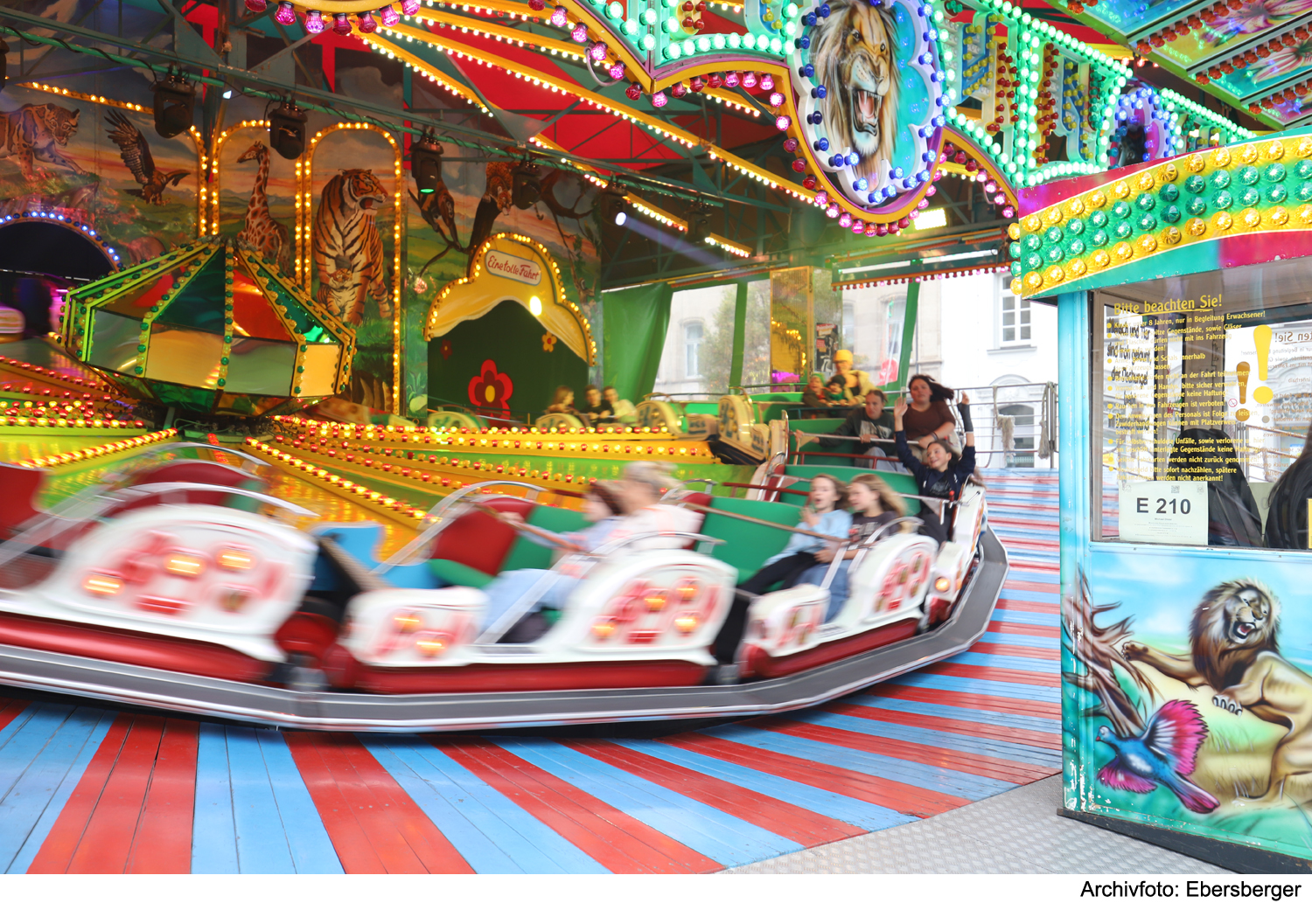 Das traditionsreiches Rundfahrgeschäft mit Licht- und Nebeleffekten begeistert durch mitreißenden Musik und den dynamischen Bewegungen.