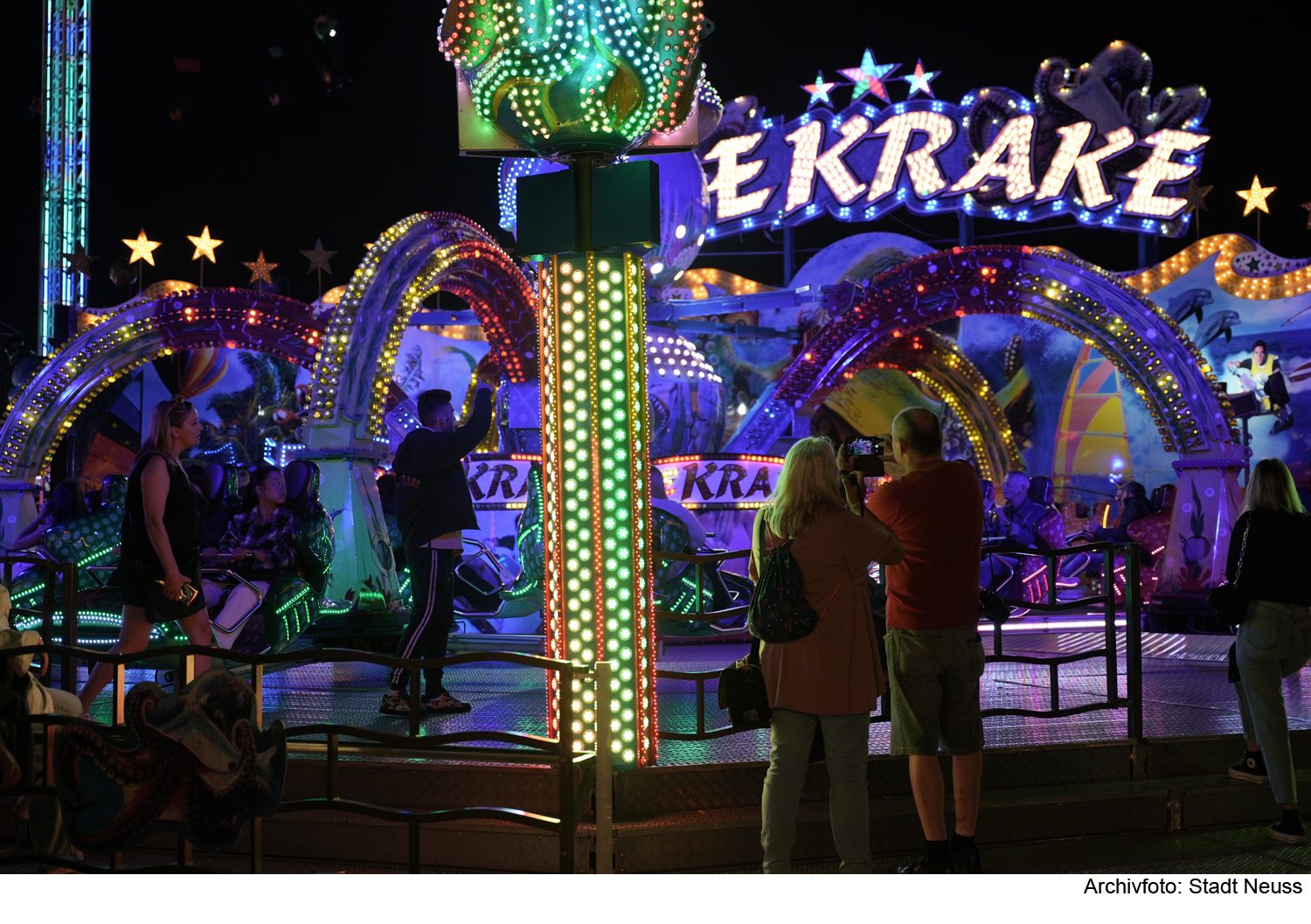 Besondere Highlights sind im Jahr 2024: „Mr. Beat“ von Schaak, „Fighter“ von Mages, „Big Bamboo“ von Hempen (Neuheit in Neuss), „Break Dance Nr. 1“ von Bonner und „Voodoo-Jumper“ von Schäfer. Daneben können sich die Besucher auf die „Wilde Maus“ von Barth, „Kristallpalast“ von Sturm, „Musik-Express“ von Dresen, „Die Krake“ von Markmann, „Hip-Hop-Dancer“ von Westenberg“, zwei Autoscooter von Eylart und Weber sowie einen „Kinderscooter“ von Lentzen freuen.