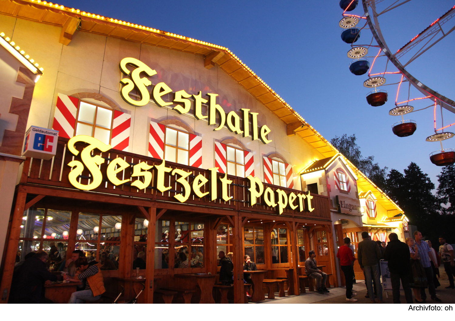 Wie bereits 2023 betreibt die in dritter Generation tätige Festwirtsfamilie Papert aus Bechhofen (Landkreis Ansbach) das Festzelt. Die Besucher dürfen sich wieder auf urig-gemütliche Atmosphäre im Festzelt und im großzügig gestalteten Biergarten freuen. Das Speisenangebot deckt nicht nur die typischen Volksfestschmankerln wie Haxen, Hendl, Spießbraten oder Spanferkel ab, sondern bietet auch Speisen für Vegetarier und Veganer. Hierbei setzt die Festwirtsfamilie möglichst auf lokale Lieferanten und regionale Großhändler.