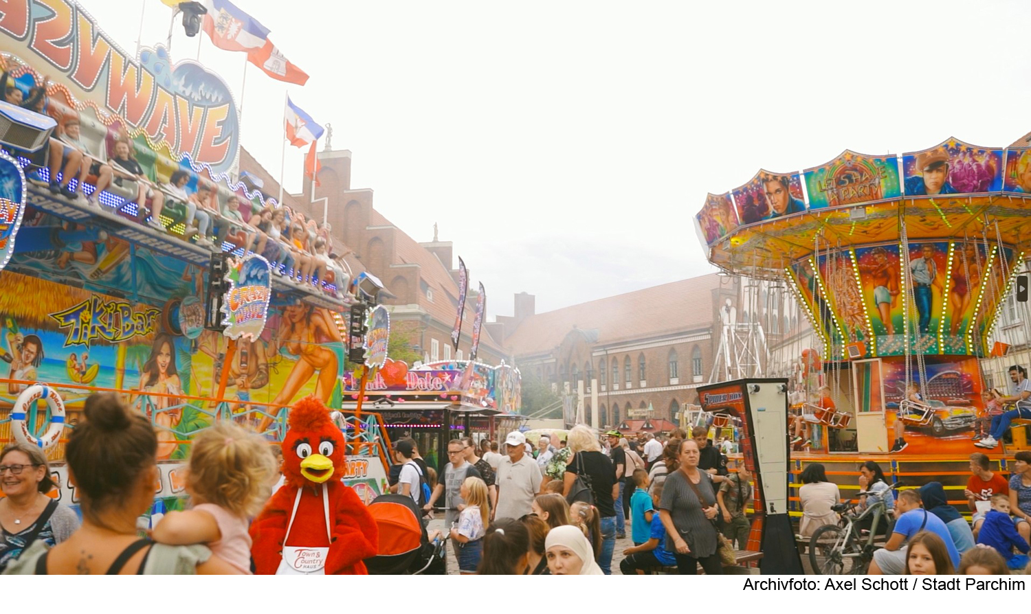 Verbunden werden die beiden Bühnen von beliebten Fahrgeschäften und gastronomischen Angeboten auf dem Parchimer Schuhmarkt. Dazu gibt es am Samstag die Oldtimer-Meile in der Blutstraße sowie die Parchimer Wirtschaftsmeile, inklusive Kinderspielarena auf dem Mönchhof. Dort präsentieren sich Parchimer Unternehmen mit ihren Jobs und Produkten, ganz nach dem Motto: „Made in Parchim – Lerne die Parchimer Wirtschaft kennen“.