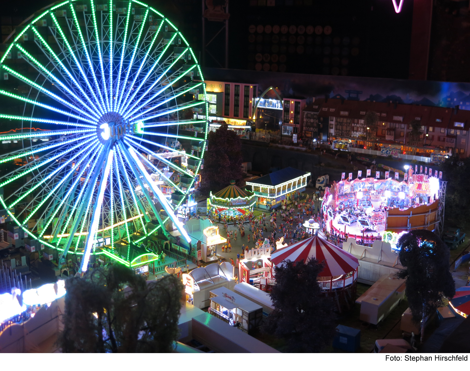 Stephan Hirschfeld präsentiert mit „Stephans Kirmeswelt“ eine einzigartige Modellkirmes im Maßstab 1:87. Über 50.000 LEDs, 6.000 Miniaturbesucher und detailverliebte Fahrgeschäfte machen die 6 Quadratmeter große Anlage zu einem echten Erlebnis.