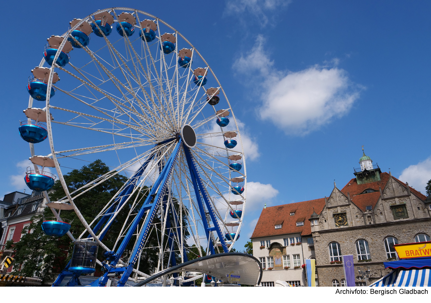 Die auffälligen gelben Plakate und Werbetafeln an den Hauptzufahrtsstraßen von Bergisch Gladbach weisen deutlich auf den Beginn der Kirmessaison hin. Zur Laurentiuskirmes sind die Schausteller pünktlich mit ihren Fahrgeschäften und Angeboten in der Stadt vertreten – eine Tradition, die seit 183 Jahren besteht. Die frühesten diesbezüglichen Einträge im Stadtarchiv gehen auf das Jahr 1842 zurück.